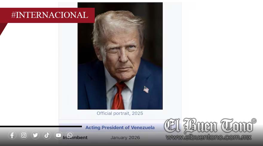 El presidente de Estados Unidos, Donald Trump, causó revuelo este domingo al publicar en Truth Social una captura de su página de Wikipedia en la que aparece como “presidente interino de Venezuela” desde enero de 2026. La imagen muestra su fotografía oficial sobre esta descripción, mientras más abajo sigue apareciendo como Presidente 45 y 47 de Estados Unidos.