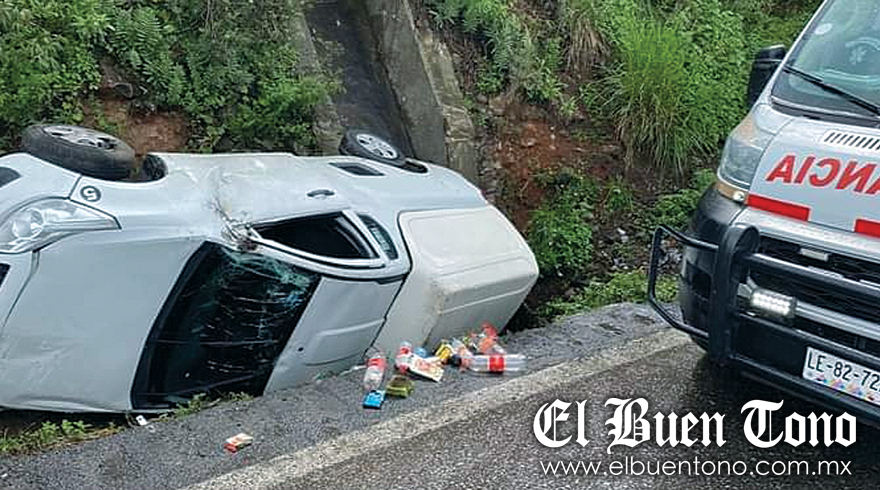 A la altura del kilómetro 252 la falta de pericia del operador y lo mojado del asfalto, hicieron que perdiera el control del volante y derrapara hasta acabar volcada en la cuneta lateral y sus ocupantes quedaron atrapados; por fortuna lograron salir por su propio pie.