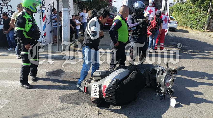 Córdoba, Ver.- Dos personas que viajaban en motocicleta resultaron lesionados al chocar contra una camioneta particular, este martes por la mañana en la calle 10, entre las avenidas 20 y 22 de la colonia Toxpan.
