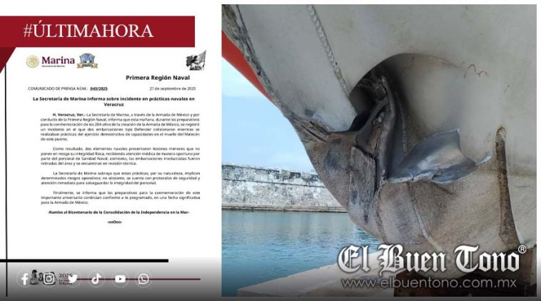 La Secretaría de Marina informó mediante un boletín que, como resultado del choque, dos marinos sufrieron heridas leves. Las actividades forman parte de los preparativos para los festejos oficiales que celebran la labor de la Armada de México.