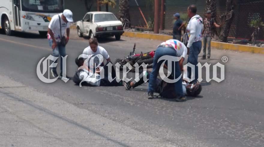 Coscomatepec, Ver. – Dos motociclistas resultaron lesionados de gravedad al chocar contra un vehículo de modelo atrasado, durante la tarde de este viernes en la carretera federal Fortín-Huatusco a la altura de la entrada de un conocido motel. Paramédicos del grupo Samuv llegaron para brindarles los primeros auxilios y la atención médica, así como vecinos y automovilistas que llegaron en apoyo.