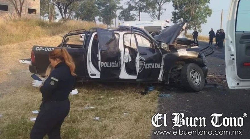 Jalisco.- Este sábado, un choque frontal entre una patrulla de la Secretaría de Seguridad Pública del Estado y un tráiler resultó en la muerte de dos oficiales y dejó a otros dos heridos de gravedad. El accidente ocurrió en la carretera estatal Teocaltiche-Jalostotitlán, a dos kilómetros de Teocaltiche, cuando una camioneta Chevrolet negra con el número económico CP-002 colisionó con un tractocamión que transportaba una góndola.