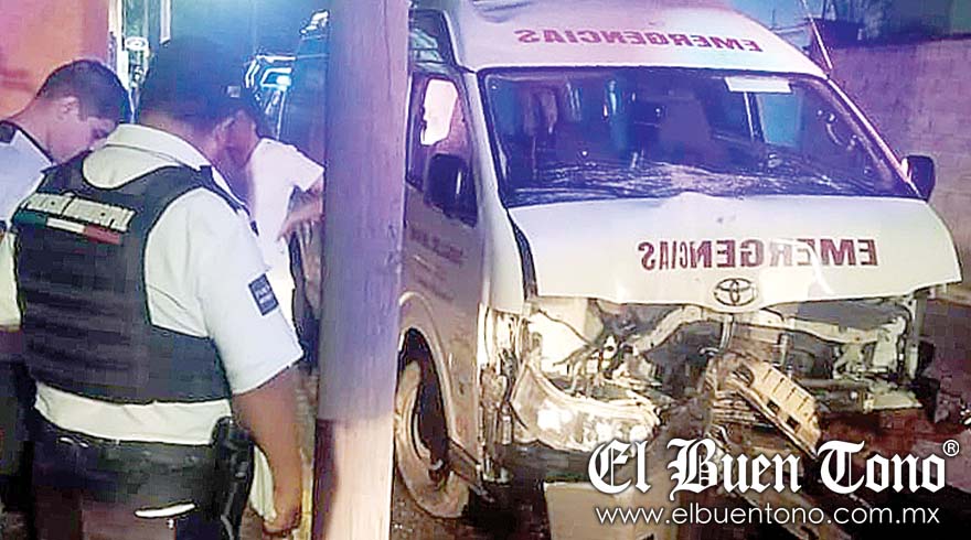 Rafael Delgado.- Un aparatoso accidente vial se registró la noche del pasado viernes en la cabecera municipal, luego de que un integrante de la Dirección de Protección Civil, quien conducía una ambulancia, perdió el control y chocó contra una luminaria.