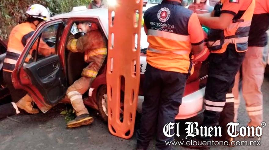 Fortín.- Un taxista de Fortín, quien conducía en estado de ebriedad, fue rescatado herido después de quedar atrapado dentro de su vehículo que chocó contra el cerro en la carretera federal Fortín, a la altura del Faunito.