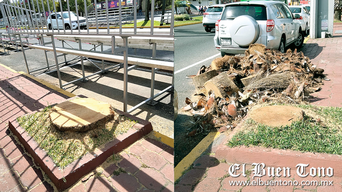 En redes sociales estuvieron señalando que trabajadores del Ayuntamiento por órdenes del presidente municipal Igor, Fidel Rojí López, “se están echando los árboles y/o palmeras de Calle Real como si deveras a sus pinches gradas les hicieran daño para el desfile del 31 de octubre”.