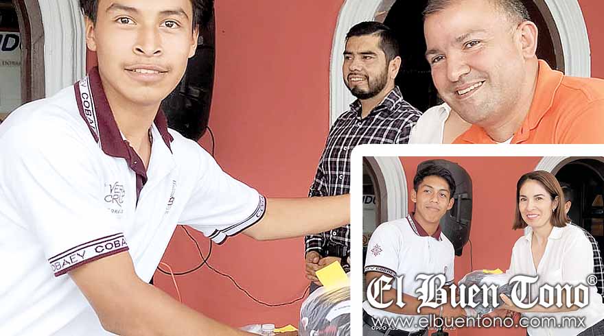 Yanga.- El alcalde, Fernando Nicolás Gordillo, y su esposa, la presidenta del DIF Municipal, Elizabeth Franco Cortés, entregaron ayer uniformes de fútbol a los alumnos del Cobaev 29 Gaspar Yanga y apoyo económico al equipo de gimnasia rítmica Alma Negra.