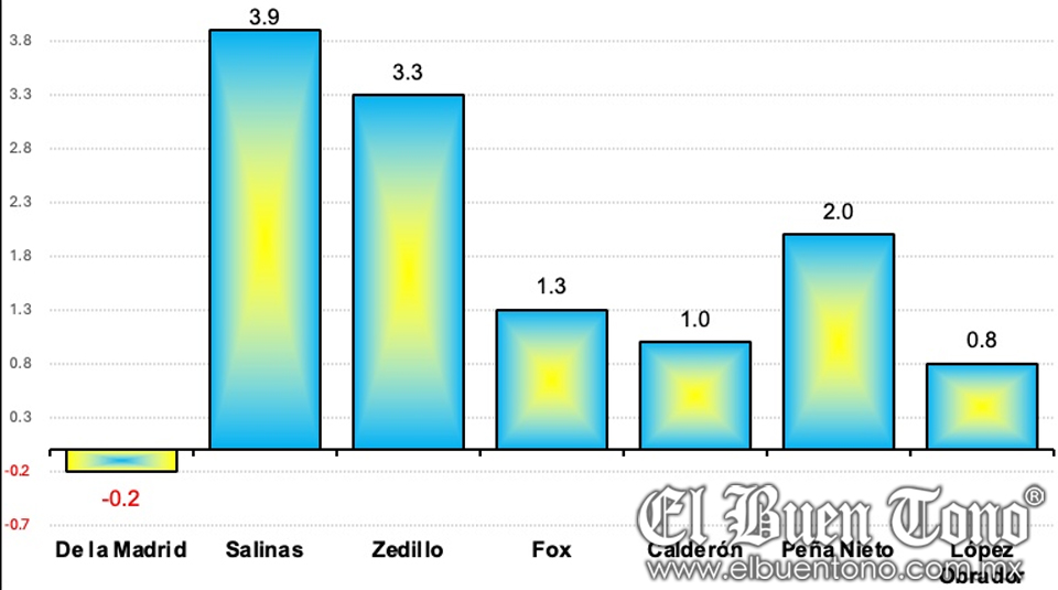 En contraste, la administración de Carlos Salinas de Gortari destacó por la implementación de fuertes reformas que impulsaron a la economía a un nivel de crecimiento del 3.9%, el más alto registrado en la historia reciente del país.