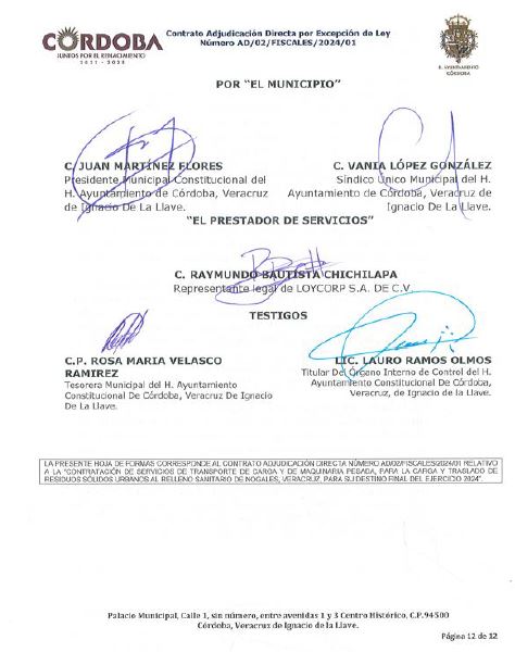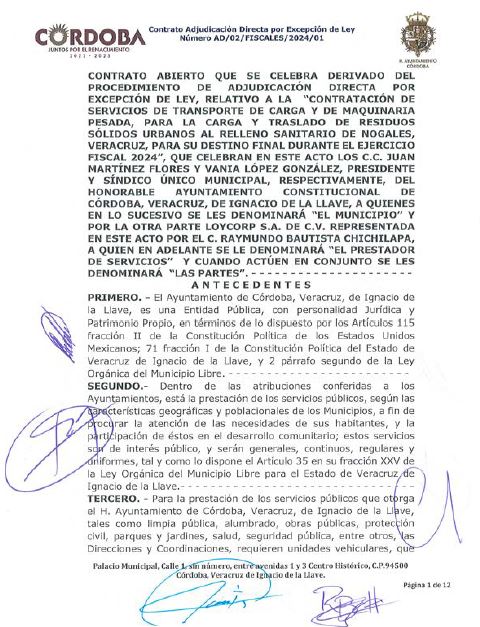 Por ejemplo, los documentos contractuales muestran que, el 16 de enero de 2024, se firmaron simultáneamente cinco acuerdos bajo la figura de “adjudicación directa por excepción de ley”. Entre ellos, destaca un contrato de arrendamiento de 13 camiones compactadores de basura con la empresa Transportes Mortera S.A. de C.V., por un monto fijo de 22 millones 466 mil 880 pesos, que incluye un pago inicial y once mensualidades.