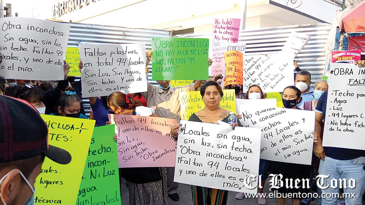 No obstante, los afectados aseguraron que la obra no será entregada al cien por ciento como se dijo al principio, pues carecerá de islas, los puestos no tendrán techo y la luz aún no ha sido conectada.