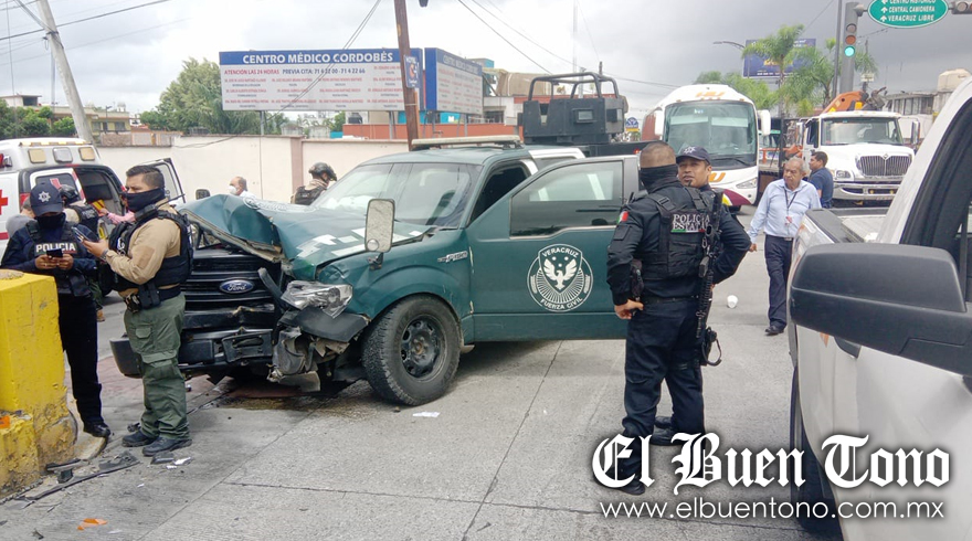 Córdoba.- Dos elementos de la Fuerza Civil lesionados así como un civil, además de la movilización de los grupos de auxilio, personal de la Policía Estatal y Tránsito Municipal, es lo que dejó el choque de la patrulla FC2008 y un vehículo Nissan-Note, al impactarse de manera aparatosa sobre el cruce de la avenida 11