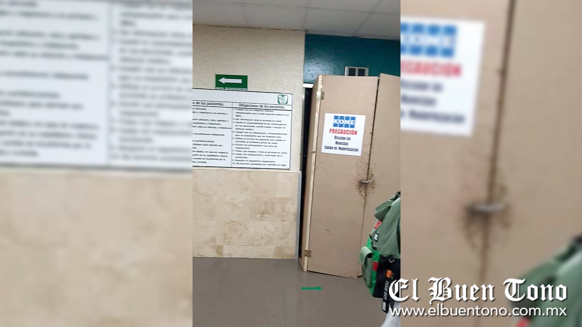 “Desde hace dos meses se descompuso uno de los elevadores y el otro desde hace un mes y hay otro que tienen que atrancar con una silla para que no se cierre, y de esta manera están laborando, hay familiares que tenemos que visitar y están internados en el sexto piso, ahí suben pacientes de Covid y otras especialidades, pero se ve muy mal organizado por los directivos”, expresó un derechohabiente.
