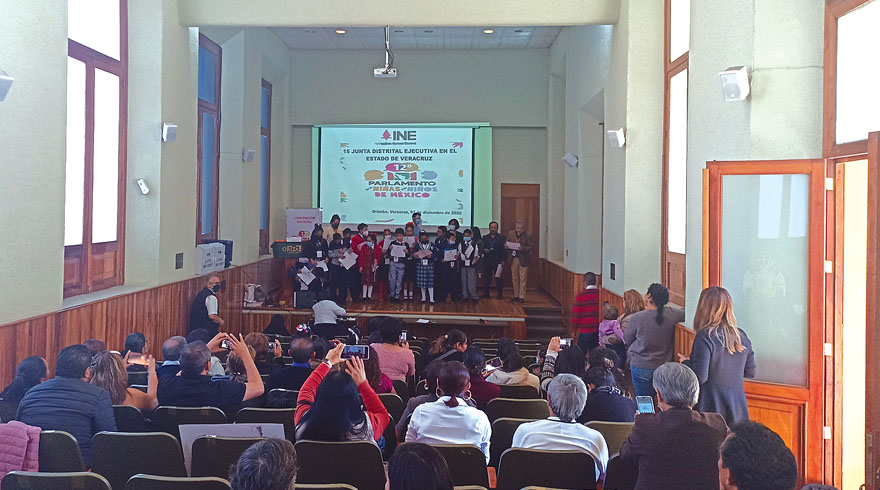 Orizaba.- La 15 Junta Distrital Ejecutiva en el estado de Veracruz del Instituto Nacional Electoral, entregó 17 reconocimientos del 12° Parlamento de las Niñas y los Niños de México, para el cual se convocó a estudiantes de diferentes planteles educativos.