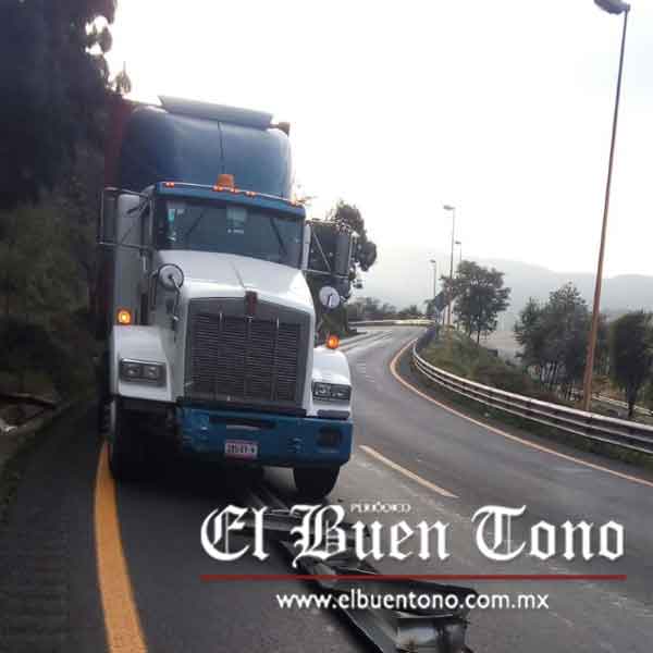 La Estancia.- Sólo daños materiales y afectaciones a la circulación dejó como saldo un percance carretero, el cual se registró la mañana de ayer sobre el carril de subida de la autopista Puebla-Córdoba, cuando el chofer de un tractocamión perdió el control del volante y chocó de frente contra la barra de contención.
