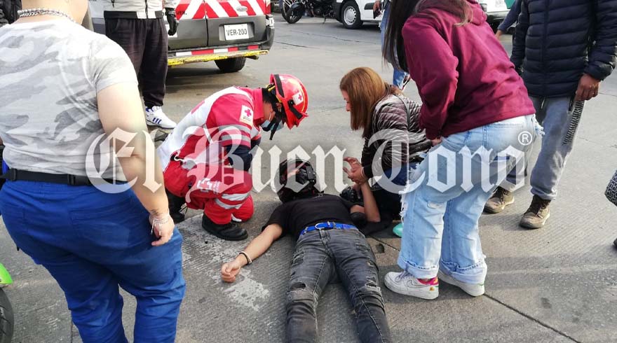 Córdoba. – Un motociclista resultó lesionado en el cruce de la avenida 11 y calle 3, donde fue impactado por una camioneta con logotipos del ingenio Motzorongo, la cual se dio a la fuga. Paramédicos de la Cruz Roja atendieron al joven, quien fue trasladado a un hospital, mientras elementos de Tránsito tomaron conocimiento de los hechos para dar con el responsable.