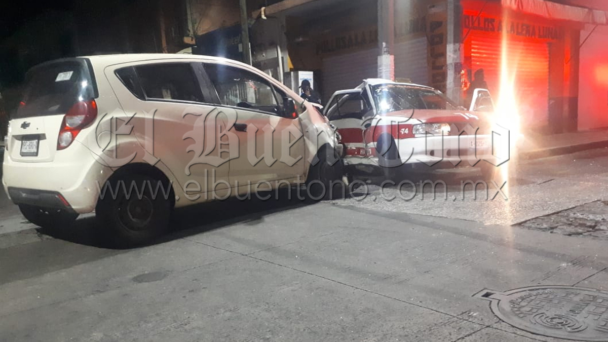 Huatusco.- Un aparatoso choque fue el que se registró la madrugada de este sábado, al ser impactado el taxi con número 74 de Huatusco por un Chevrolet Spark cuyo conductor se dio a la fuga dejando abandonada la unidad en el centro de Huatusco, teniendo que intervenir las autoridades de Tránsito Municipal.