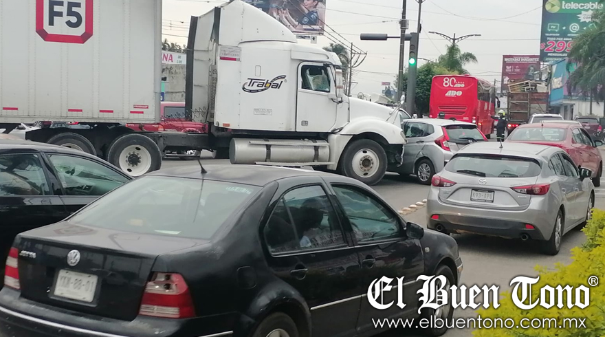 Córdoba. – Un tráiler de la empresa Trabal, wue no respetó el semáforo en rojo, se impactó contra un automóvil conducido por una mujer, en el bulevar Córdoba-Fortín, a la altura de la colonia Dos Caminos.