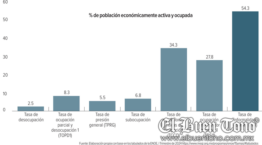 Los datos del Inegi subrayan los desafíos estructurales en materia de precariedad laboral en México. Aunque el valor del salario mínimo general ha aumentado, la informalidad sigue siendo alta, con millones de personas trabajando largas horas sin estabilidad laboral ni prestaciones.