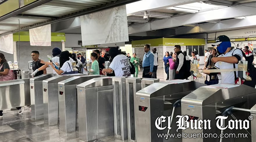 CDMX.- El día de ayer, cerca de 15 personas encapuchadas llevaron a cabo una protesta denominada “Metro Popular” en la estación Universidad de la línea 3 del Sistema de Transporte Metro. Los manifestantes entregaron folletos informativos sobre la presencia de grupos “Porriles” en el Colegio de Ciencias y Humanidades (CCH) Naucalpan.