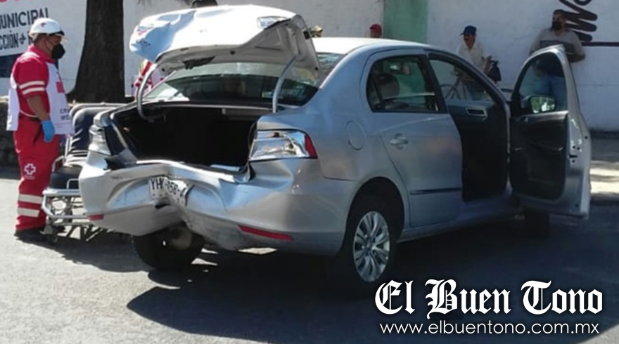 El accidente ocurrió ayer a las 10:00 horas, cuando Maribel Salgado Martínez, de 43 años, circulaba a bordo de un Volkswagen tipo Gol de color gris, con placas YHY-458-A, rumbo a Ciudad Mendoza. A la altura de la ex fábrica textil San Lorenzo, el auto fue embestido por una camioneta tipo Pick Up de color blanco, con placas XT-22-732, rotulada con los logotipos de la Cooperativa Pascual Boing. Como resultado, Maribel Salgado, resultó herida y minutos después fue atendida por los socorristas de PC y Cruz Roja, al igual que el trabajador de la citada refresquera, quien no requirió hospitalización.