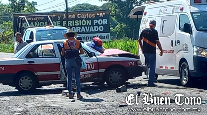 Yanga.- Dos persona lesionadas y cuantiosos daños materiales fue lo que dejó la colisión entre un vehículo particular y un taxi la mañana de ayer domingo, sobre la carretera federal Córdoba-Veracruz.