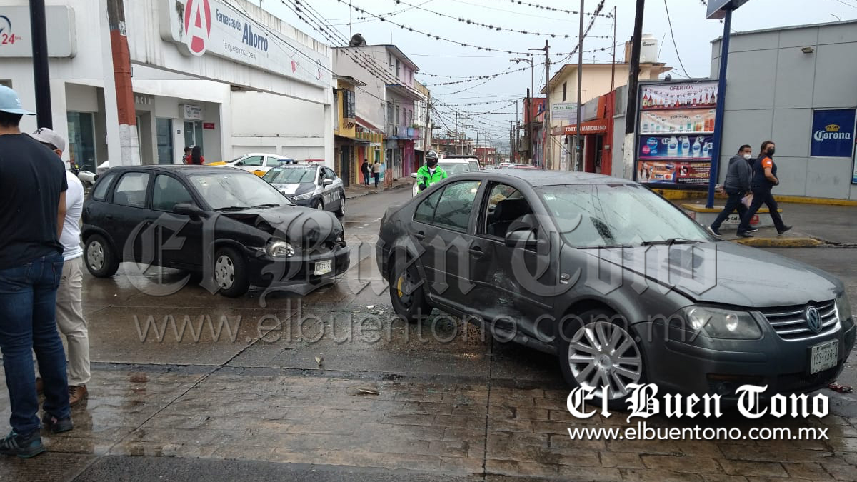 Córdoba,Ver.-Daños materiales y la movilización de los servicios de  emergencia fue lo que dejó la colisión de un vehículo Chevy y un Volkswagen Jetta en el cruce de la avenida 9 y calle 10, luego de que uno de los dos no respetara la luz roja del semáforo.