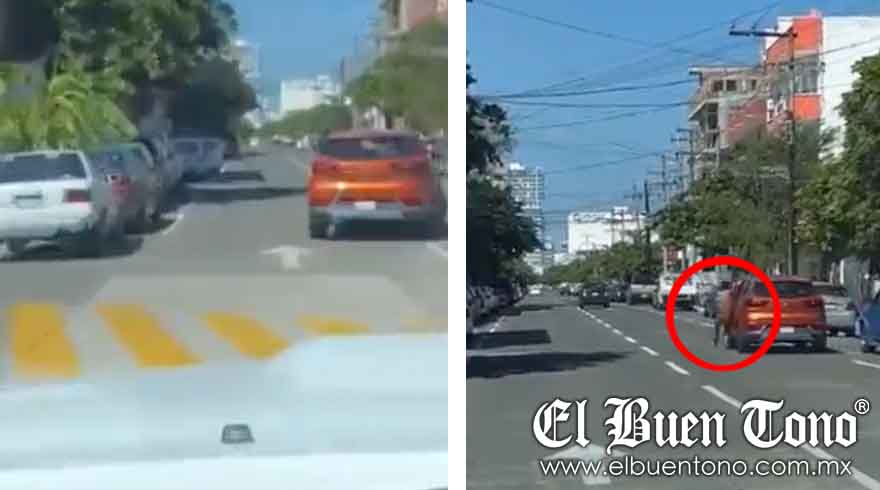 Un hombre desnudo fue captado colgado de la ventana de una camioneta en movimiento que transitaba por calles de la colonia Ricardo Flores Magón de la ciudad de Veracruz.