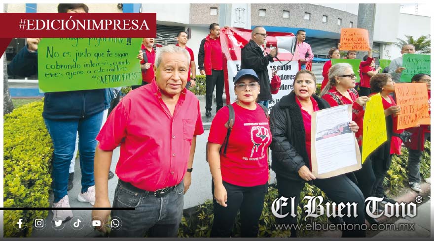 Orizaba.- “Ni un paso atrás”, advirtieron Mayra García, secretaria general de la Sección 5, y Armando Navarrete Carrera, de la Sección 23, en Córdoba, al encabezar la protesta de trabajadores del Nacional Monte de Piedad, quienes a seis meses de la huelga denuncian la falta de solución y la cerrazón de la empresa.