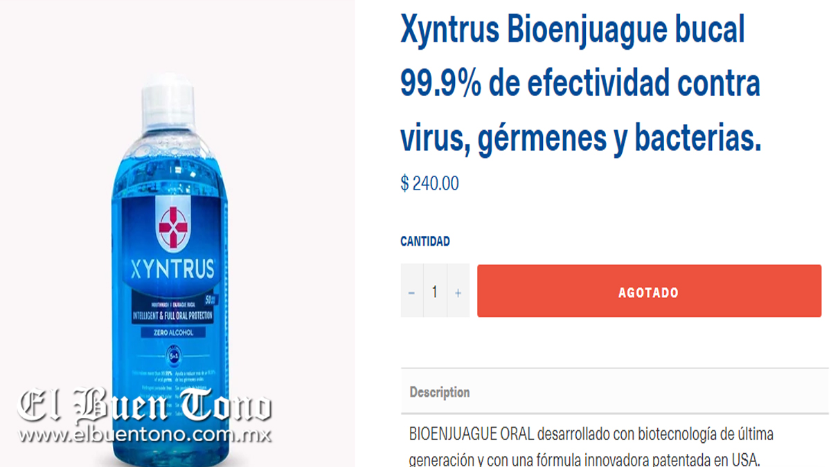 El enjuague es Xyntrus, del laboratorio Zeyco, uno de sus componentes es D-Limoneno bioencapsulado, el cual sería eficaz para eliminar el virus SARS-CoV-2; dicho estudio contó con la participación de países como México, Estados Unidos, Colombia, Italia y España.