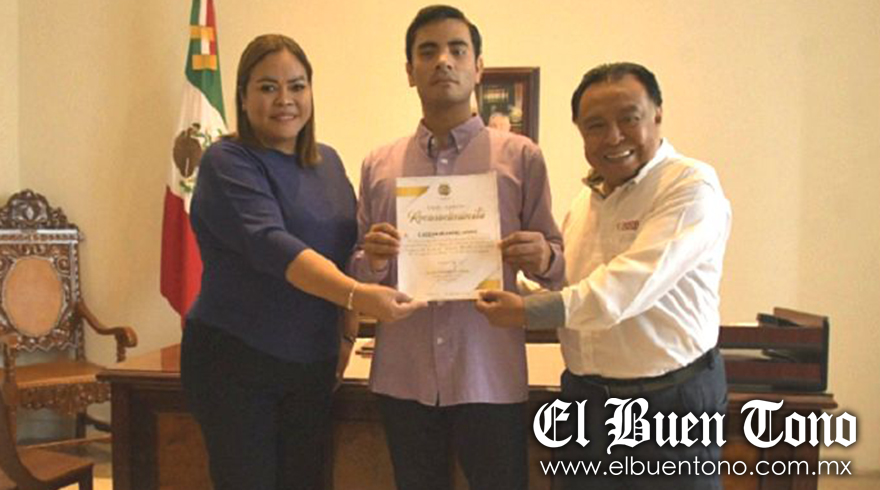Córdoba.- El alcalde Juan Martínez Flores le entregó un reconocimiento al agrónomo José Emilio Jiménez Jacinto, por su participación en el XVII Parlamento de la Juventud 2022, que fue organizado por el Instituto Veracruzano de la Juventud y el Congreso del Estado de Veracruz, representó a Córdoba con la propuesta “Biorremediación del Suelo contra el Cambio Climático”, donde el agrónomo presentó su propuesta en materia del suelo agrícola, debido a todos los contaminantes que tienen agroquímicos, buscando alternativas ecológicas que aporten nutrientes a la tierra, sin dañar la salud.