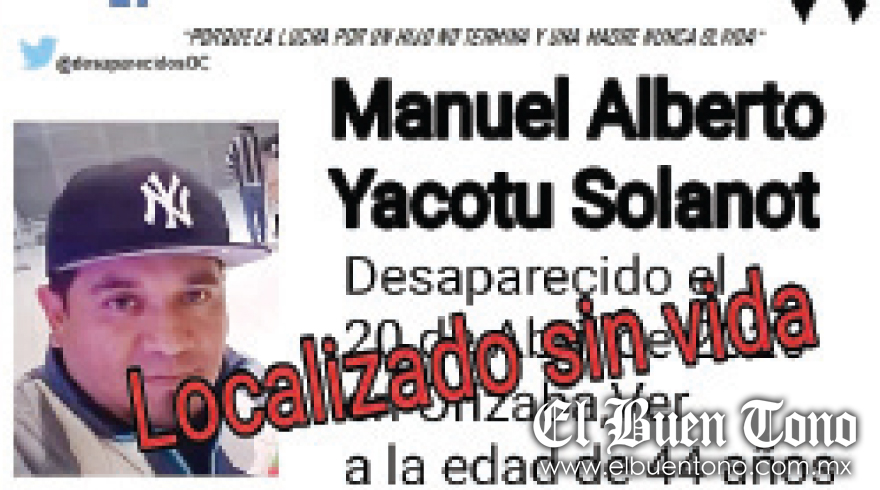 Ixtaczoquitlán.- La Fiscalía Regional informó también que ya fueron entregados a sus familiares, los restos del taxista Manuel Alberto Yacotu Solano, de 44 años, quien estaba desaparecido desde el 20 de abril de 2020 en Orizaba.