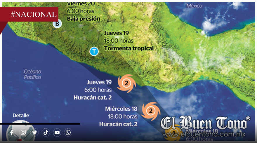 Durante una conferencia de prensa, la mandataria advirtió que, de acuerdo con los reportes meteorológicos más recientes, “Erick” podría tocar tierra entre la tarde de hoy y el transcurso del miércoles. “Desafortunadamente, podría entrar a las costas de Guerrero y Oaxaca. Probablemente esta tarde inicie su impacto, aunque ya hay lluvias muy importantes en los dos estados”, expresó.
