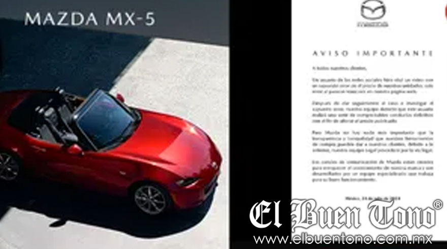 “Para Mazda no hay nada más importante que la transparencia y la tranquilidad que nuestras herramientas de compra pueden dar a nuestros clientes. Debido a lo anterior, nuestro equipo legal procederá por la vía legal”, declaró la empresa.