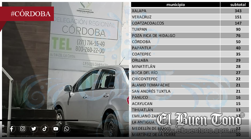 Con un registro de cincuenta quejas acumuladas hasta julio, Córdoba se sitúa como el sexto municipio con más reportes en el estado de Veracruz. Esta cifra, si bien es superada por los grandes centros urbanos como Xalapa (343) o Veracruz (151), adquiere una gravedad particular al analizarla en su contexto.