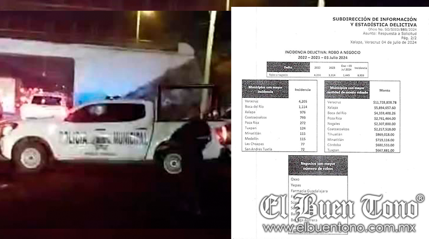 De enero a junio de este año, la SSP reconoce que se han suscitado 1,445 robos a negocios en el estado de Veracruz, y entre los principales municipios con más incidencia están: