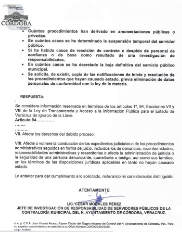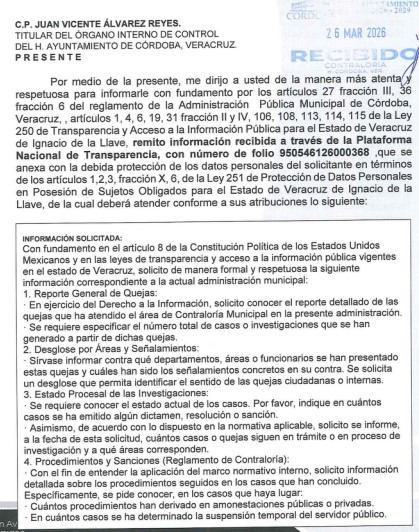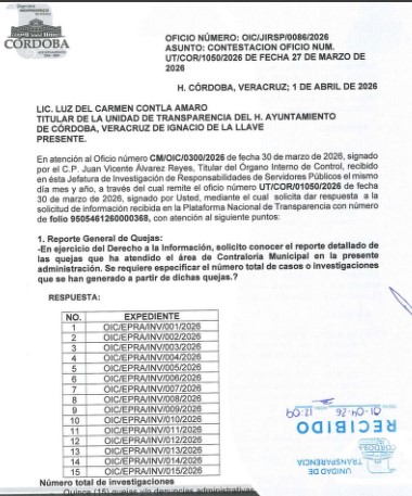 Córdoba, Ver.- La administración de Manuel Alonso Cerezo acumula 15 investigaciones internas. El Órgano Interno de Control se niega a señalar áreas o funcionarios bajo el argumento de “secrecía” y “debido proceso”, replicando un patrón de opacidad que ya había sido documentado en marzo.