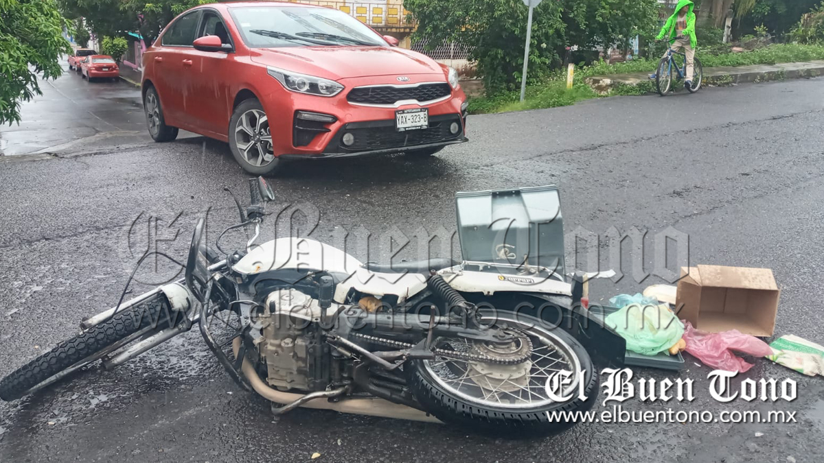 Córdoba,Ver.- Con lesiones en el cuerpo resultó un joven repartidor luego de que fuera impactado por el conductor de un vehículo Kia en la calle 31 y avenida 5 de la colonia Huilango.