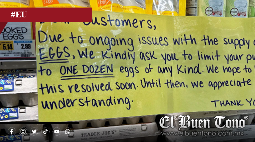 EU.- El brote de gripe aviar ha provocado la escasez y el encarecimiento del huevo en EE.UU., obligando a tiendas como Trader Joe’s, Costco y Whole Foods a imponer límites de compra. La enfermedad ha llevado al sacrificio de más de 158 millones de aves desde 2022, afectando el suministro y elevando los precios, que en diciembre alcanzaron los 4.15 dólares por docena, con un aumento estimado del 20% este año. Algunos consumidores ya pagan más de 10 dólares por docena, y restaurantes como Waffle House han añadido recargos en sus menús.