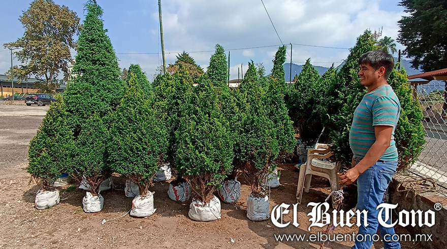 El comerciante originario de la comunidad de La Sidra, perteneciente al municipio de Atzacan comentó que se instalaron cerca del mercado Cerritos desde el pasado 18 de noviembre, con la finalidad de que quienes vienen a realizar sus compras, observen los pinos naturales de Navidad y opten por llevarse algunos.