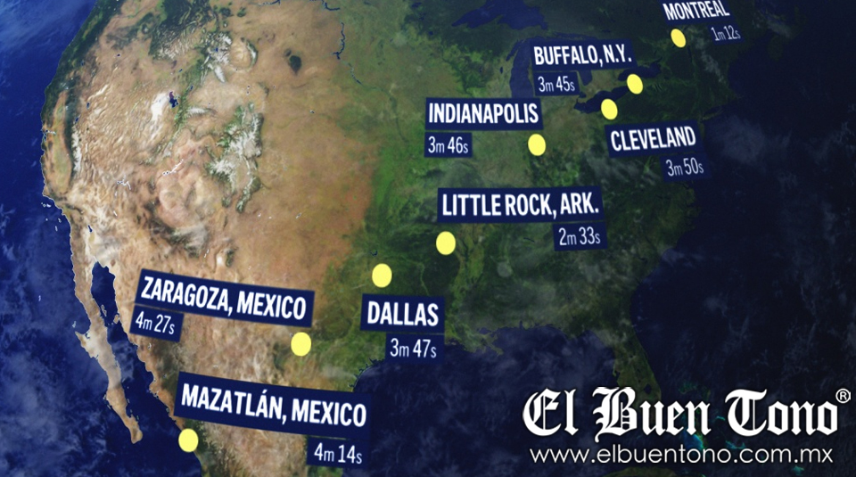Este eclipse, que durará casi el doble que el ocurrido en 2017, ofrecerá una audiencia mucho más amplia y se prevé que será el más visto en la historia del continente. La Luna cubrirá al Sol por hasta 4 minutos y 28 segundos, un fenómeno que usualmente se observa en lugares remotos pero que esta vez pasará por grandes ciudades como Mazatlán en México, y Dallas, Indianápolis y Cleveland en Estados Unidos.