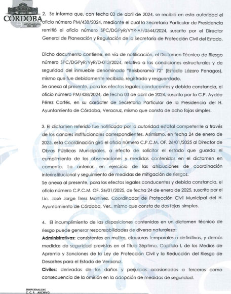 A pesar de la programación de eventos internacionales, el dictamen es taxativo: Se deben “delimitar las áreas que presenten posibles afectaciones estructurales para evitar que la población usuaria acceda”. La autoridad estatal advierte que cualquier omisión a estas medidas de seguridad genera responsabilidades “administrativas, civiles y penales” para los servidores públicos responsables.