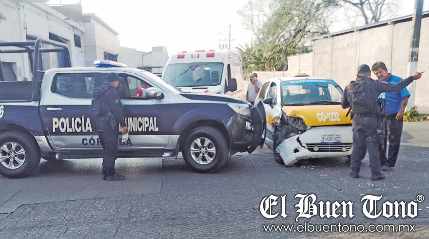 El incidente involucró a la patrulla de la policía municipal número económico PMC 16, asignada a elementos estatales, y el taxi CO-1232.
