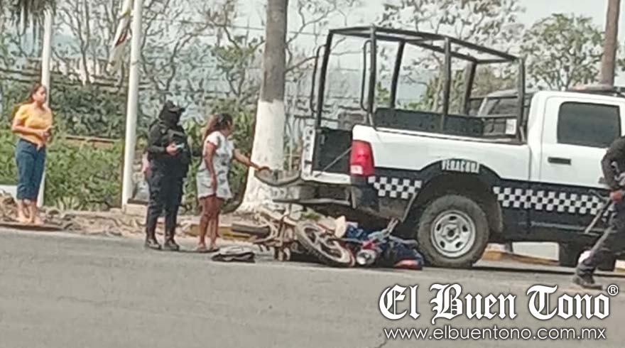 Cuitláhuac.- Elementos de la Policía Estatal que viajaban a bordo de la patrulla SP-3912, provocaron un choque con un motociclista que circulaba por la carretera federal Córdoba-Veracruz, a la altura de Paso Carretas.