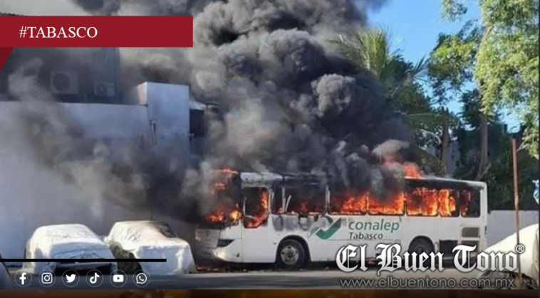 Villahermosa, Tabasco.– Un grupo de estudiantes del Conalep, ubicado en el Fraccionamiento Insurgentes, provocó la quema de un autobús escolar como parte de una protesta para exigir el pago de becas que, según señalaron, llevan varias semanas retrasadas.