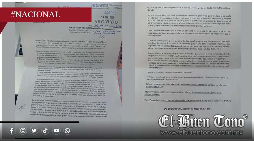 A través de una carta enviada a la presidenta nacional de Morena, Luisa Alcalde, la ex diputada local Eva Cadena Sandoval reiteró que el video en el que intentaron implicarla en actos de corrupción fue una trampa creada para perjudicar a Andrés Manuel López Obrador, entonces candidato presidencial y fundador de Morena.