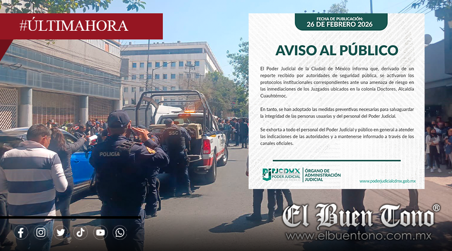 Ciudad de México. – Este jueves, las instalaciones de los juzgados de Ciudad Judicial, ubicadas en Niños Héroes y edificios aledaños, fueron evacuadas tras el reporte de presuntos artefactos explosivos, un día después de que un inmueble del Poder Judicial de la Federación en Insurgentes Sur también fuera desalojado por una amenaza similar.