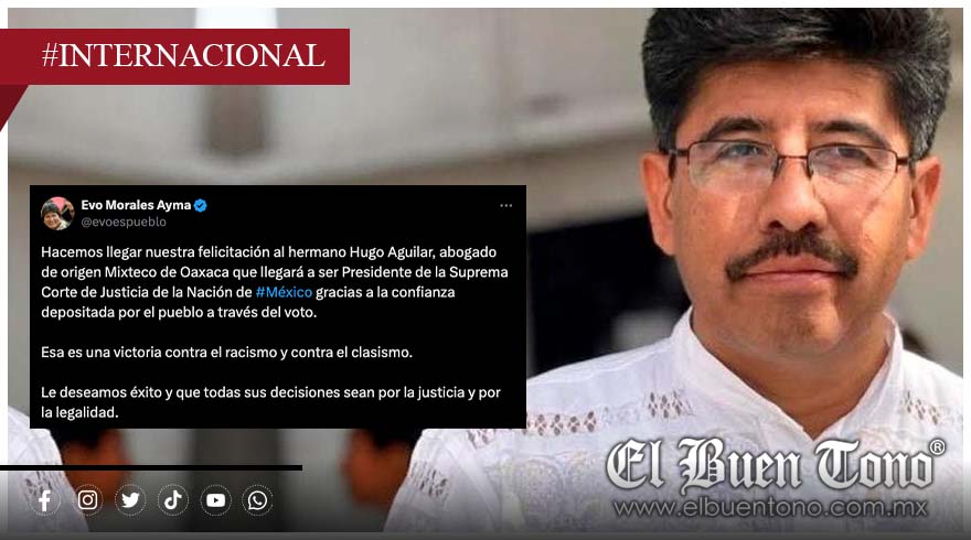 “Hacemos llegar nuestra felicitación al hermano Hugo Aguilar, abogado de origen mixteco de Oaxaca que llegará a ser Presidente de la Suprema Corte de Justicia de la Nación de México gracias a la confianza depositada por el pueblo a través del voto. Esa es una victoria contra el racismo y contra el clasismo. Le deseamos éxito y que todas sus decisiones sean por la justicia y por la legalidad”, escribió Morales.