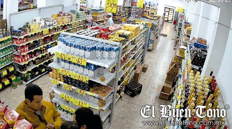 En una grabación de circuito cerrado de un establecimiento afectado del pasado sábado, a las 18:59 horas, se observa cómo Carlos Colorado llega con su familia y se dirigen al área de productos comestibles donde él, usando una chamarra café, toma una caja con chocolates y se la guarda.