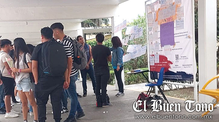 En la pizarra, donde con una cartulina color morado centraron el título: “Tendedero! De acosadores, violadores y agresores”, estudiantes de diversas carreras del Tecnológico colocaron sus expresiones donde exhibieron a catedráticos, asegurando que incurren en acoso.