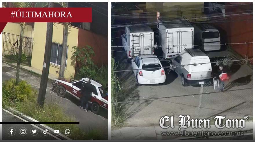 Fortín, Ver.- El conductor del taxi número 253, un Nissan Tsuru, y su copiloto fueron grabados a través de una cámara de vigilancia en los momentos en que robaban diversos objetos de un salón de fiestas.