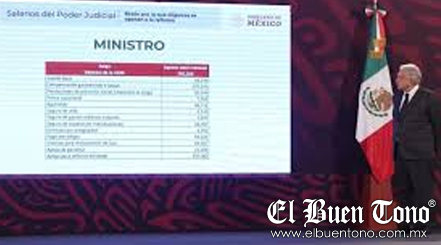 Nacional.- Durante la conferencia matutina del presidente Andrés Manuel López Obrador, Elizabeth García Vilchis, directora de Redes de la Vocería de presidencia, reveló tablas detallando los ingresos mensuales y anuales de integrantes de la Suprema Corte de Justicia de la Nación (SCJN). Según los datos presentados, un ministro de la SCJN tiene ingresos mensuales totales de 792 mil 258 pesos, desglosados en sueldo base, prestaciones como prima vacacional, viáticos para restaurantes de lujo, apoyo de gasolina y aguinaldo mensual equivalente.